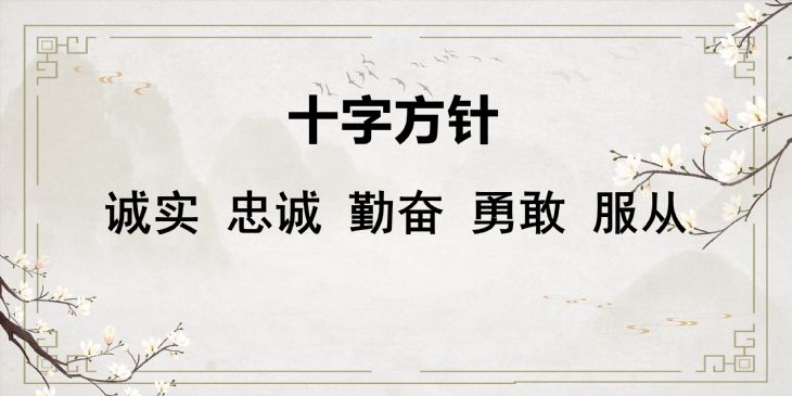 忠诚:尽己为人地捍卫视为忠,人人为我,我为人人,忠诚于企业,忠诚于社会,忠诚于国家。