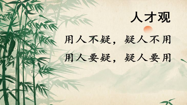 我们不疑的是“人品”,这句话的字眼是“疑人不用”,相信人品人格、价值观、文化,重在品。