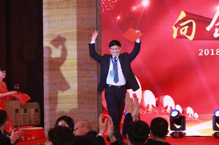 董事长杨文生同志带着大家的期盼兴高采烈地奔向舞台