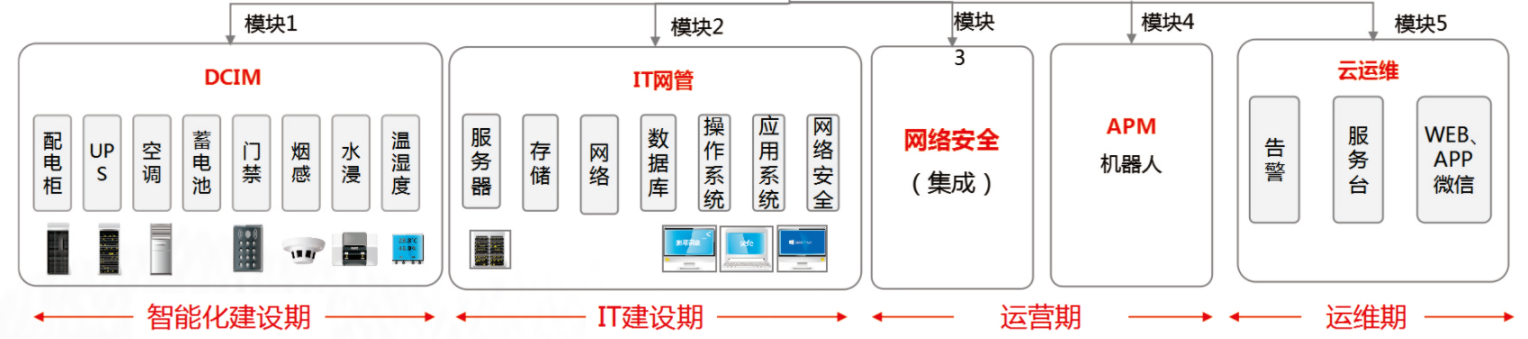 底端系统模块化设计:确保根据“综合可视化运管平台”的前提下,根据客户建设不同阶段,提供模块化的系统功能平滑增容。