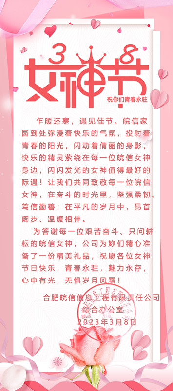 最后,衷心祝愿所有皖信女同胞们节日快乐,愿我们在岁月的长河里心若芷萱,芳华自在!