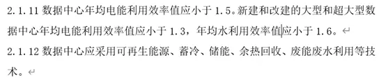 2024版:新建和改建的大型和超大型数据中心年均电能利用效率值应小于1.3,并且年均水利用效率值应小于1.6。