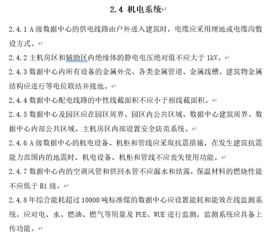 2024年版:在机电系统方面提供了更详细的要求,如蓄电池的防火隔离措施、数据中心机电设备的抗震措施等。