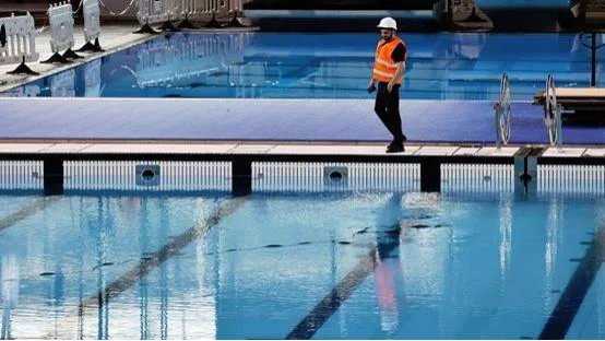 2024年6月,一名工程师正在检查巴黎奥林匹克水上运动中心的最后建设阶段